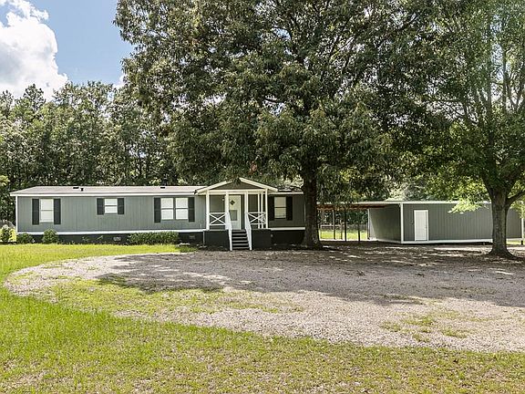 Affordable Country Living! 26 x 56 Fleetwood manufactured home underpinned. Remodeled one level w/ 3 bedroom, 2 bath on a private, flat lot! Covered front porch. Open great room & dining w/ corner stone fireplace. Sliding glass doors lead to back covered porch for cookout & entertaining! Split bedroom plan. Lots of windows for natural light w/ new 2 inch faux wood blinds. Big kitchen w/ dining area. New stainless appliances including refrigerator. 2 car carport. Additional new 570 sqft detached garage/workshop w/ double garage doors on rear. Home is total electric w/ public water & septic system. All new paint inside & out, new hard surface flooring and laundry room.