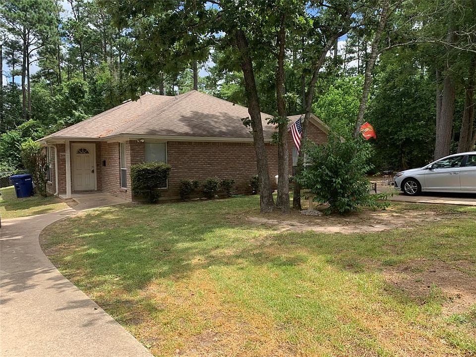 ABSOLUTELY CHARMING! THIS HOME FEATURES HIGH CEILINGS IN LIVING AREA, LOTS OF WINDOWS FOR NATURAL LIGHT. SPLIT PLAN FOR THE PERFECT ROOMATE SITUATION. PATIO OUT BACK FOR RELAING. TILE FLOORD FOR EASY CARE. MINUTES TO SAM HOUSTON. B9TH BEDROOMS VERY LARGE WITH SPACIOUS BATH WITH WALKIN CLOSETS. COUNTRY LIVING CLOSE IN! WASHER,DRYER & FRIG IN PLACE.