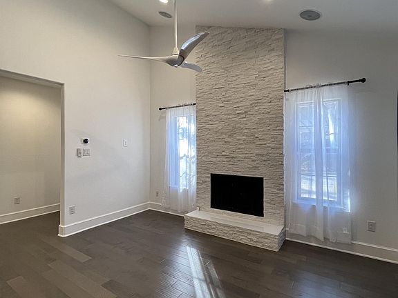 High ceilingsNatural lightSolid countertopsDouble vanityLuxury master bathroomCustom kitchen cabinetsLight fixtures