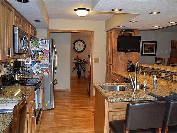 Don't miss this gorgeous, updated home in-town! Total of 4 bedrooms and 3.5 baths. Open floor plan with main level laundry and half bath. Updated Hickory cabinets, granite countertops and high top breakfast bar open to the living room. Private master suite with custom tiled shower and double sinks. Walk in master closet. Large spare bedrooms with ample storage and window seats. Walk out basement includes large family room with fireplace, wet bar, 4th bedroom and full bath with shower. Huge storage room in unfinished area of basement. Located on a no-outlet street. Call today!