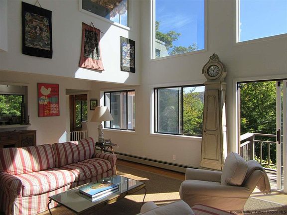 Here is a home where you'll discover a heavenly retreat atop Grogkill. Reach out & touch the sky or gaze outward over the views across 3-4 mountain ranges. This property offers an elegant simplicity enhanced by its gorgeously landscaped waterfall & heated pool which is surrounded by a beautifully landscaped garden area. The landscaped terrace around the pool includes a firepit & dining or BBQ area for year round outdoor mountainside enjoyment. The sellers had purchased & include in this sale two additional lots in order to guarantee their ultimate mountain-top privacy with its unlimited space to roam the hillsides that back-up to state protected lands. When the owners had children they decided to clear & level a wooded area so that a large 'field of dreams' would be built for family games. This level land can be enjoyed as a meadow or playing field. A new small orchard was planted as well. But wait!! Walk into the two story living room with its fireplace & wide, high mountain-sky views or settle into the cozy, intimate media and reading alcove. This great room opens to a spacious deck with both the pool & vast mountain range views. When one steps into the dining area it is easy to imagine just sitting, lingering & enjoying nature from the three-sided sunny windowed room. The kitchen shines and was recently updated with new appliances. The top floor master bedroom suite has a large bath with jacuzzi & a separate glass block shower. Of course from this third story bedroom you'll find your own private deck to enjoy nature day or night! At night keep the doors open and let the sounds of nature and gurgling of the pools waterfall rising from below lull you to sleep. Lastly, the special lower level with its own entrance becomes a world of its own. The previous owner was a professional classical musician and had his practice, teaching and composing space here. The current owners have children and entertain guests. This is their special hideaway with private entrance and various sleeping options! All opening to the terrace & heated saline pool. Both the pool & home can be controlled remotely so that they will be at your perfect temperature upon arrival. All this definitely says gracious country living at its peak! And remember there is the always special private benefit available to Grogkill residents only. A deep, fresh water-fed pond, great for a small boat, picnicking at its side or just a quiet meditation spot far from all with its' natural waterfall in the background.