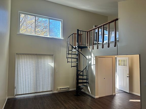 Open House this Saturday 11/14/2024 from 1:30 to 3:30 Stepping inside this condo, you're immediately struck by the open, airy feel of the living room with its cathedral ceiling, casting a sense of grandeur over the space. The spiral staircase catches your eye, winding up to a cozy loftperfect for a quiet nook or creative workspace. Sunlight filters through brand-new windows, illuminating freshly painted walls that feel warm and welcoming. In the kitchen, a brand-new stove stands ready for your next culinary creation, while the generously sized bedroom offers a spacious walk-in closet that's both practical and luxurious. Finally, stepping out onto the small deck, you can already picture summer evenings with a grill, some comfy furniture, and a good book in hand. This condo is more than just a space; it's a perfect canvas ready to be filled with new memories.