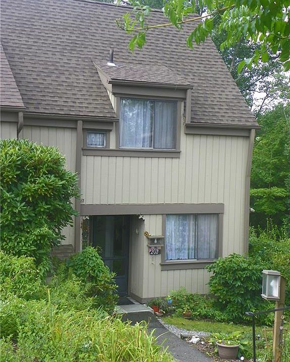 Wait until you see this affordable, well maintained FRANKLIN Townhouse with it's beautiful, secluded setting. This 1354 sq ft, 2 bedroom, 1 1/2 bath end unit beauty boasts of a large, living room with dramatic cathedral ceiling, palm leaf ceiling fan, gorgeous built-ins surrounding a wood burning fireplace and slider leading to its secluded backyard patio area. The dining room, adjacent to the living room, can accommodate for the largest of crowds and offers its own slider to a second patio. And for easy maintenance, this large, open floor plan living room/dining room area offers beautiful wood grained laminate flooring. It's upgraded kitchen features a ceramic tile floor, ceramic counter tops and backsplash, bright, white wainscoted cabinets, butcher block work surface and a free standing freezer to compliment its newer appliances. And for easy cleaning, the foyer is ceramic tiled as well. The remodeled 1st floor 1/2 bath features a pedestal sink, newer vanity with corian countertop, newer toilet and lower wall tile surround. The upstairs of this 2-story charmer features Berber carpeting, a loft area open to the living room below, and two spacious bedrooms. A full bath, accessable to both bedrooms, includes a newer stackable washer/dryer unit in the laundry area within. Unit also features a newer heat pump, A/C and hot water tank. Enjoy the outdoors? Then you are in for a real treat with its private, wooded, patio setting. Come.......make this well maintained,