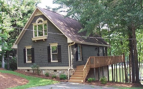 Finally an Affordable Site Built Home on Lake Oconee for $350,000! 3BR/2BA, Granite Counters, S.S. Appliances, Hardwood Floors, Vault Beam Ceiling, Flagstone Fireplace, New Roof, Expansive & Shaded Lakeside Deck & gentle Slope to 16' X28' Max Dock shared with home on right next door. Conveniently located in the Sugar Creek Area.