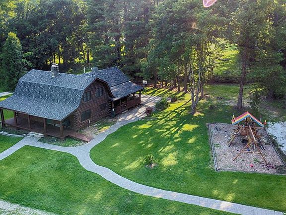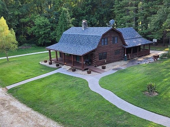 Beautiful log cabin sitting on 5.2 Acres north of Hardin in beautiful Calhoun County! This 4 bedroom and two bath cabin comes with an updated guest home and a 45x90 oversized pole shed. All hardwood floors, beamed walls, and a wood burning fireplace create the perfect ambiance of a cabin in the woods feel! Upstairs has 3 spacious bedrooms, living room, and full size bathroom. Basement has the perfect kid area and/or man cave. This property has so had many updates in the last two years! Guest house or rental has a new hot water heater, plumbing, and electric with all the amenities. Cabin has a new roof, tankless hot water heater, light fixtures, sump pump, kitchen features, and much more. New appliances such as frig, stove, and dishwasher convey. Large front yard with professional updated landscaping. Other outdoor features included concrete patio, sidewalks, two covered porches, oversized fenced dog pen, and outdoor woodburning stove heats both homes. Suitable for Bed/Brk Additional Rooms: Mud Room
