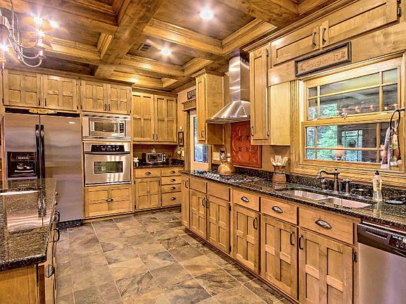 Elegant Mountain Home with 2.099 acres, 3 BR/3.5 BA. Log siding & Rock home with all the bells & whistles! This large executive home has a fully equipped Kitchen w/Granite Countertops, island, food pantry and there is a breakfast area, Dining Rm, large Living Area w/large wood-burning FP, a large main floor Master w/gas log FP, wood trey ceiling, his-n-her closets. There are 2 BR suites upstairs & loads of storage. Large covered front porch, rear open deck, rear screened porch w/FP, 3-car Garage plus workshop. All this + Nice Mtn View! Must see to appreciate all the amenities! Furnishings are negotiable. Possible Owner financing. Adjacent Lot #7 also available, see mls #262202 for total of approx 3.5 acres.