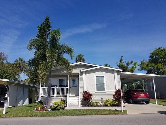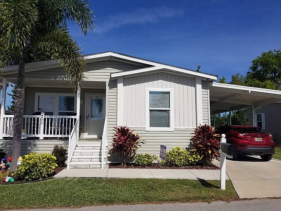 Just Listed $77,900- Unfurnished. This is a cozy 2017 mobile home with 1,353 sqft of indoor living space. Lovely curb appeal with a front porch, side driveway, carport and storage shed. The back of the home has a nice covered patio area to relax and enjoy the Florida breeze. Stepping inside from the front porch you enter the large open living room, dining room and kitchen. The kitchen has lovely cabinets and matching black appliances. Nice center island with pendant lighting. There is no lack of storage in this kitchen. The living and bedrooms have carpeting. The rest of the home has beautiful vinyl flooring. Crown molding throughout and sheetrock walls. The home features an indoor laundry room with access to the carport. The two-guest bedroom are spacious with good sized closets. The guest bathroom is a tub/shower combo with storage under the vanity. The Master bedroom is large and could easily accommodate a king-sized bed and dressers. The bedroom also features a step-in closet. The master ensuite has lovely cabinets, his and her sinks and a step-in shower. This home is in a great location. You will never have to worry about neighbors being behind the home. Walking distance to friendship hall and pool. Call today to make this your Florida dream home!! ACT FAST & CALL TODAY!! Don't forget to ask about the FINANCING available on this home. Colony Cove is an age qualified (55+) five-star resort community of manufactured / mobile homes. The "Cove" boasts 5 clubhouses, 5 heated pools, a riverfront pavilion and private fishing pier, a private marina, a fenced dog park (very pet friendly), tennis, shuffleboard, new pickleball courts, 2 new fitness rooms, 24-hour patrol, clubs for every interest, and much more. There are daily planned activities throughout the park. Bottom line, if you get bored here, it's your own fault!! The lot rent in Colony Cove is based on the homes' location. While the monthly rent may not be the lowest around, it's by far the best value for the money. Not only does the monthly rent cover all of the amenities of the community listed above, it also covers almost all other monthly expenses such as; water, sewer, trash pickup, all property taxes, lawn maintenance. . .pretty much every monthly expense except electricity and internet. The current lot rent on this home is estimated at $793.60 per month. All listing information given to us is considered appropriate and reliable but always recommend Home Inspections by independent companies who have a background and thorough understanding of manufactured homes. We cannot guarantee the accuracy of information given to us or the condition of the home. Lot rents are determined by the community office not our company.