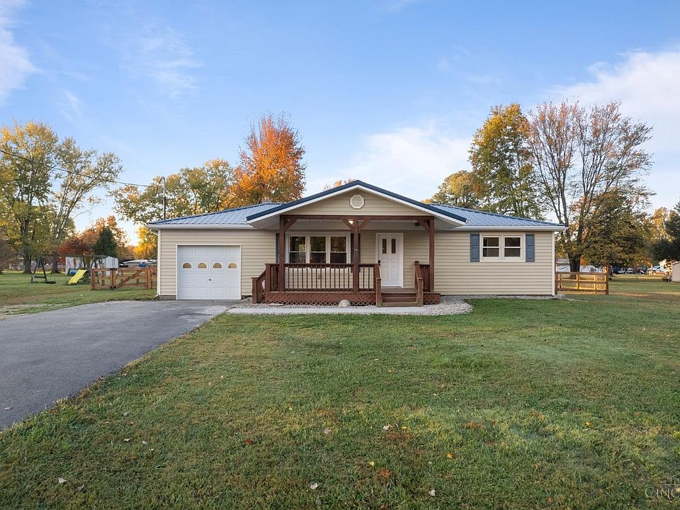 Welcome home to this charming 3-bed ranch! Step up to an oversized, covered front porch, perfect for relaxing evenings, and a blacktop driveway offering ample parking. Inside, you'll find a cozy new electric fireplace and a series of thoughtful updates: a modern kitchen (2022), a refreshed bathroom (2022), a new water heater (2022), an upgraded dishwasher (2022), and a 200-amp electric panel (2022). Updated plumbing throughout and a large, fenced backyard with an oversized patio making this home ideal for entertaining and family fun. Don't miss out on making this wonderful property yours today