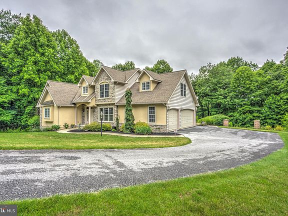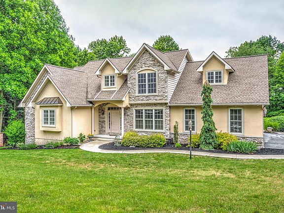 Nestled in the serene region of Cornwall, this remarkable 5 bedroom property boasts a prime location with 3+ acres and borders the prestigious Iron Valley Golf Course. The surroundings offer natural beauty and exceptional privacy. With its picturesque setting and seclusion, this property captures the essence of peaceful living. When entering the home you will love the ease of 1 floor living! This home features a formal dining room, a spectacular custom quality eat-in kitchen with granite counters, tile backsplash, staggered height cabinetry, stainless appliances and a perfect pantry. The kitchen area leads to a 2 story great room with a cozy stone surround gas fireplace, filled with lovely natural light. The 1st floor primary suite completes the 1 floor living! This suite includes a large primary bath with built-in cabinetry around the double bowl vanity area, a walk-in tile shower and walk-in closet. On the 2nd floor you’ll find 4 additional bedrooms and a Jack and Jill private access bath! Excellent additional finished living space is found in the daylight lower level. Be sure to check out the handy tucked away work shop room! Newer gas furnace & A/C. Property also offers a 22kw generator. The outside custom paver patio and deck area are perfect for entertaining! Excellent 3 bay garage! Very close to PA Turnpike, 72, 419 & 322. 20-30 min to Lancaster, Hershey, Harrisburg or Reading. 55 min to Phila.