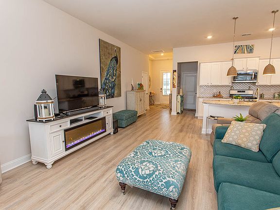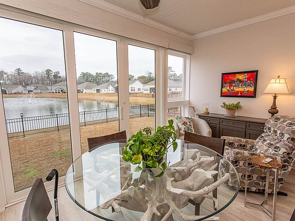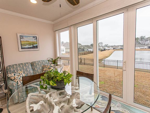 One level with full water view. 35' easement provides privacy. back yard fenced in. Includes plantation shutters custom blinds in sunroom, luxury vinyl throughout, ceramic walk in shower in both baths, includes all kitchen appliances plus washer/dryer and freezer in garage Amenities include 2 story club house with pool and fitness room, playground for children, community gardens One year lease, amenities included, utilities not included, pet deposit, rental insurance required no smoking inside of house, tenant responsible for grass mowing, changing of filters and light bulbs