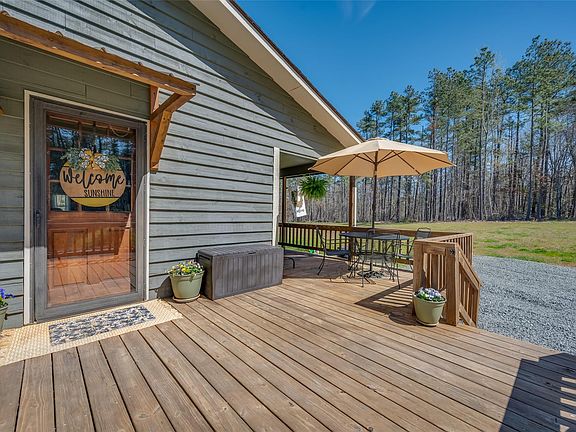 As the sign on the truck says, "Welcome to the Farm!" This quintessential country charmer on 13+ unrestricted acres is definitely a MUST SEE. Thoroughly renovated from top to bottom including an addition for an expansive primary suite. Open concept floor plan w/wood-look vinyl plank throughout main areas & bedrooms, neutral paint tones & ship lap accent walls. Primary bedroom is huge & king-size bed friendly w/extra deep walk-in closet. Luxurious bath w/dual vanities, elegant tile shower w/glass enclosure, & freestanding tub nestled beneath picture window. Lovely interior w/on-trend updates for a comfy, cozy feel. Step outside to enjoy the shade of the covered porch or catch a sunbeam on the side deck. Level cleared area that could easily be turned into pasture or garden, playground area, dog pen, small chicken coop & fenced enclosure that is currently used for goats. Ample parking area & walk-out basement w/garage door for tons of storage space or potential workshop space.