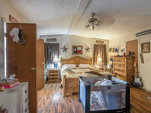 Nestled amongst 5+ acres of serene property you will find a well maintained 2,000+ sq ft cabin-like home that won't disappoint when it comes to open living space. The cozy fireplace will keep you warm on those chilly evenings. Walking through the back door you'll enjoy the wrap around porch and deck with above ground pool and plenty of shade from the Texas heat. You'll also have numerous fruit trees to pick from including 3 pear, 2 plum and 2 peach trees. For your enjoyment you'll find a fire pit, a pond and an abundance of wildlife. Also on the property has an 80 x 60 shop that is complete with electricity and plumbing. Whether you're hobbyist or in need of ample storage space this shop has you covered.