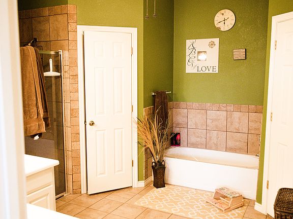Beautiful custom home on .25 acres! Hardwood floors in living area, carpet in bedrooms, and ceramic tile in kitchen. Open kitchen layout with black appliances and bar-top separation from living area. Corian countertops, undermount sink, and 42in solid oak cabinets offer quality kitchen space. Master suite has vaulted ceilings, double vanities, decorative lighting, separate shower, and his-her walk in closets. Large backyard with trees!
