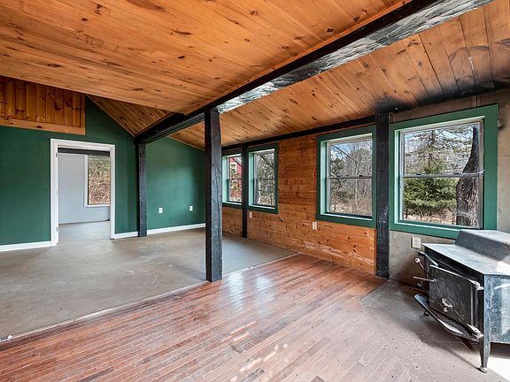 Spacious home in rural Alexandria. On the first floor, a huge great room, kitchen/dining room, laundry room, living room and an extra room you could use as an office. Upstairs, two bedrooms. Lots of attic storage! Natural wood throughout and an opportunity to make this your own. Two-car detached garage. Recent upgrades include 200 amp. electric service, a new furnace, and new water heater. Property is being sold in as-is condition. Short ride to Wellington State Park on Newfound Lake. Close to AMC hiking trails at Mt. Cardigan. Cash, conventional or possible rehab loan only.