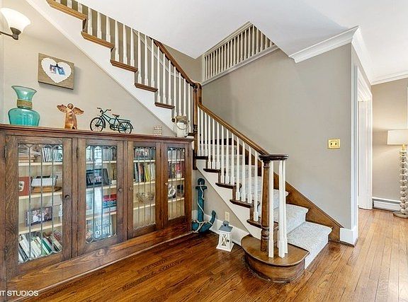 This beautiful colonial has so much much history and charm! Built in 1928 by an engineer from Chicago, its owner brought parts of the city with him! Both the wrought iron fence and fountain were brought here from parks in Chicago! Fast forward to 2020-this gorgeous home offers four bedrooms, three and a half baths, a glass office full of sun and a full basement. Many recent updates include a new roof, gutters and downspouts in 2020, a sparkling new master bath in 2019, landscape lighting, plantation shutters, blinds, carpet, paint and all new stainless appliances in 2017! You will love this location...situated across the street from Crystal Lake and on a dead end street! Schedule your showing today!