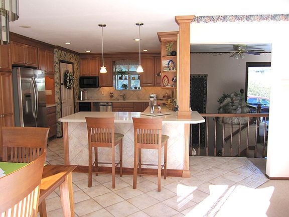 Enjoy quiet relaxing surroundings w/a lot that extends into lake. Fenced backyard includes Inground pool w/all equipment includes diving board & new cover!Gorgeous landscaping.Fin 2Car garage.Xtra parking pad provides addntl space for at least 2 vehicles. Cul-de-sac location means no traffic.Step inside to a spacious foyer entry. Living rm w/lots of windows looking out to pool & lake.Completely remodeled ktchn is a chef's delight w/all the xtras you could want; Amish maple cabinets,corian countertops, tile backsplsh, SS applncs,pull out shelves, recessed lights & lovely garden window. Sliding doors in dining area lead to maintenance free deck. Mstr Bdrm has walk-in closet & 3/4 mstr bth w/dual sink vanity. Finished wlkout bsmnt has sizeable family rm w/gas fp & bay window, nice wet bar, bonus rm & 4th bdrm w/laundry area. Plenty of closet space. Roof approx 5 yrs old. Newer water heater.Central Vac.Storage shed. A lot of great memories to be made here!