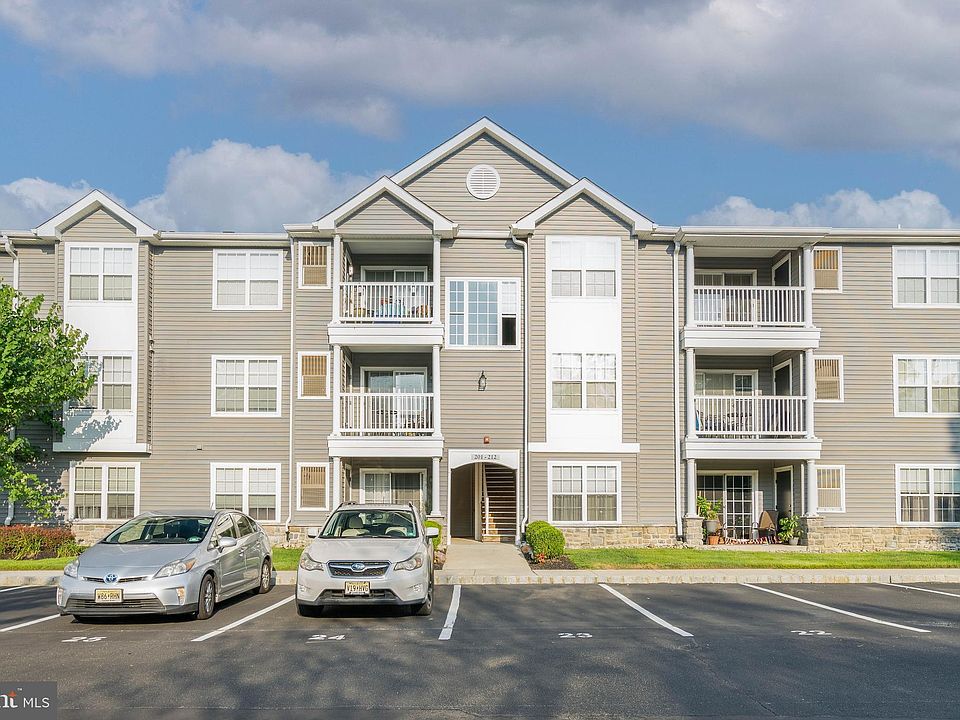 The Grande at Rancocas Creek is a pristinely kept community of condos and townhomes offering sought-after amenities, including a pool, a tennis court, a fitness center, and a clubhouse. 208 Lawrence Ln is a renovated 3 bed, 2 bath unit with a private terrace, a designated parking spot, in-unit laundry, unique design touches, and modern updates throughout. Stepping inside, you'll find a welcoming space that's bright, open, and airy, enhanced by luxury flooring and recessed lighting. A wood slat feature wall and media center anchor the living room, while a distinctive chandelier helps define the separate dining area. A pair of sliding doors lead to a quiet terrace where you can relax with a morning cup of coffee or evening glass of wine. The gleaming kitchen is fitted with white upper and navy blue lower cabinets matching the feature wall, stainless steel appliances, quartz counters, gold fixtures, a tile backsplash, and a breakfast bar. Off the entry is a spacious, sunlit bedroom suite with an attached full bathroom. Down the hall, there's a laundry closet and a bedroom filled with natural light, perfect for an office. Completing the unit is a huge primary suite featuring large windows, a custom feature wall, a walk-in closet, and a second full bathroom with a double vanity and a glass-enclosed shower. In addition to everything inside, this fantastic location is close to popular shopping centers along Rt-130, with stores like Target, Lowes, and ShopRite less than 5 minutes away. Plus, there's easy access to the NJ Turnpike and Philadelphia via the Tacony-Palmyra Bridge. Schedule your showing today!