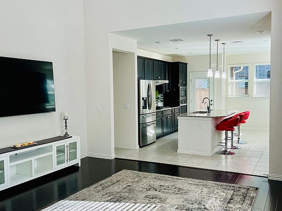 Carrollton-Farmers Branch ISD. This north-facing home was built in 2022 by Pulte Homes. Harrison floor plan. DOWNSTAIRS features the primary bedroom and ensuite with dual sinks, a walk-in shower with tile surround, and a large walk-in closet. This spacious 3-bedroom, 2.5-bathroom home with a 2-car garage is located in the gated Legends Crossings community in Valley Ranch. Step into an inviting open-concept layout with upgraded wood-like tile flooring throughout the first floor. The chef's kitchen showcases a large island with granite countertops, a built-in microwave, a stainless refrigerator, and direct access to your private oasis in the fully fenced backyard, secluded and perfect for gardening or relaxing under the covered patio. Upstairs, you will find an office or flex room, 2 bedrooms, and a full shared bathroom. It is within walking distance to the pool and amenities center, which includes a large fitness center. Conveniently located near major highways, shopping, dining, and entertainment options.
