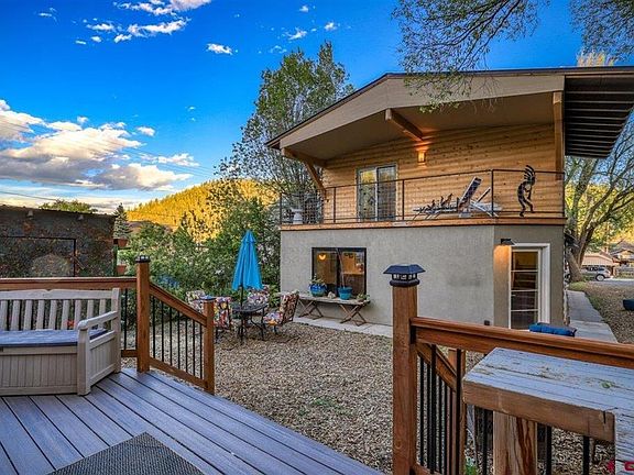 One of the most unique properties to ever hit the market in downtown Pagosa Springs. Pride of ownership, craftsmanship, heart and soul were poured into this historic downtown home. This rustic cabin was remodeled from base to roof, side to side, turning this into a dual residence that is both modern and contemporary while maintaining some rustic charm. The home has 2 living quarters that would accommodate a variety of options; multigenerational living, remote workspace, live in one side and long-term or vacation rent the other space or just enjoy some private space while kids or grands are having a hoopla. The front entrance includes a huge sunroom for summer sitting and doubles as the mud room we all need to shed our winter gear in the cooler months. This area has 2 bedrooms, a new kitchen, complete with coffee bar and a fabulous steam shower that will relax the muscles after a long day recreating in the San Juan Mountains. The back of the home is a new addition that can be a private entrance or interior entrance via lock-off. Also modern in design, with just enough of the old log wall exposed to add charm. This side features a large upper-level primary bedroom with beautiful bathroom, and over-sized deck to take in the views of Square Top, Wolf Creek and a portion of the east range. The deck will be hard to leave, but not as hard as the peaceful backyard with its private sitting, reading and relaxing areas in abundance. Also in the back is a multi-purpose space perfect for an artist studio, maker space, workshop, She-shed, personal Martini Bar, yoga studio or sleepover spot. The room is partially finished and ready for your imagination. This home has a large basement (not included in square footage), also great for a tinkering, complete with sink and plenty of upgraded electric. New in-floor heat in most of the home makes for toasty toes in the winter. Additional ETS unit for heat in the back portion of the home. Walking distance to Alley House Grille, Riff-Raff Brewery, Cork & Board Charcuterie, Lift Coffee House, the San Juan River, all the quaint downtown shops and of course, the World Famous Hot Springs. This really is a “see it to appreciate it” home that will bring joy for a variety of living scenarios! Schedule your viewing appointment soon… as we anticipate this home will sell quickly.