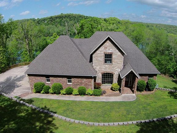 LAKE TANEYCOMO WATERFRONT AND YEAR-ROUND PANORAMIC WATERVIEW ONLY 20 MINUTES FROM BRANSON, MO! Private, Spacious, All Brick/Stone Custom Home built by current Owner in 2005, 3,300+ Square Feet which includes 4 Bedrooms, 3.5 Baths, Vaulted/Coffered Ceilings, Kitchen Granite Countertops with Large Island, Desk Area, Pantry Cabinets, Master Bath Jetted Tub, Walk-In Shower and Walk-In Closet, Hardwood Floors, 3-Car Attached Garage, huge John Deere Room in Lower Level Walkout Finished Basement, approved for Private Dock just down the path by the Campfire Area, Covered Patio, Large Main Level Deck, Exercise Room in Lower Level.