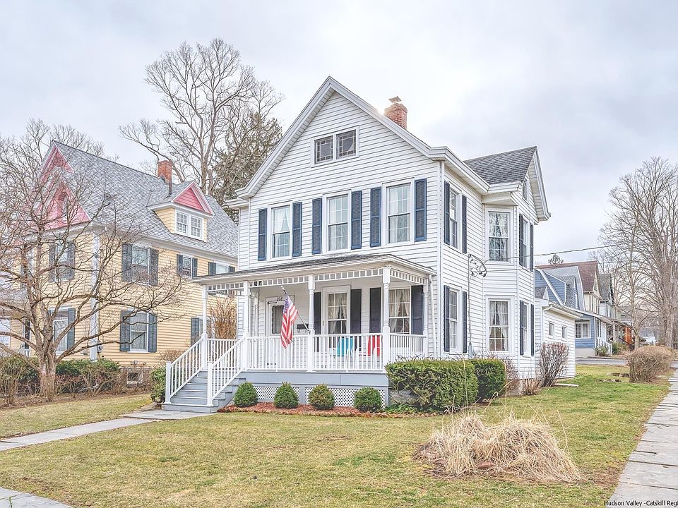 This charming Uptown Kingston 2-Story has the perfect location, within walking distance of all the cafes, restaurants, shops, park and bus station. Situated on the corner, in an area of other beautiful old homes, this well-maintained home is waiting for you to make the cosmetic updates and add your personal style and touches. The first floor features a lovely entry foyer, huge living room with bay window, dining room, eat-in kitchen with adjoining family room with vaulted ceiling and the half bath. An enclosed porch/mudroom leads to the backyard, patio and detached, 2-car garage with loft space. Upstairs you will find the primary bedroom, three other bedrooms and a office/den with stairs to the unfinished attic and the full bath. There are exposed hardwood floors and it appears there are hardwood floors under the carpet, as well. The many over-sized windows through out the house, allow the sunlight to shine in. The home has been well maintained by the current owners with many updates, such as, vinyl replacement windows, 200 amp service, B-Drysystem, main roof, approx. 10 yrs., addition roof 5 yrs., Peerless natural gas boiler(2009), gas hot water heater(2018).