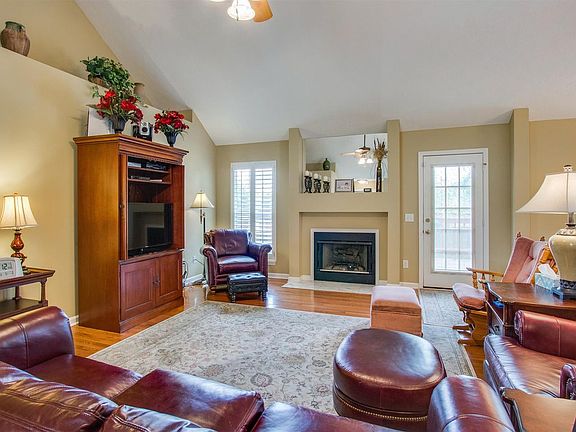 Lovely one-level home is move-in-ready w/plenty of curb appeal! Featuring lots of natural light & hardwoods, soaring ceilings & gas fireplace in Living Rm, large Kitchen, Master w/trey ceilings & granite dbl vanity/custom tile shower, plus a large deck, nice yard, and storage shed stays! Sellers requesting only conventional loans or cash buyers.