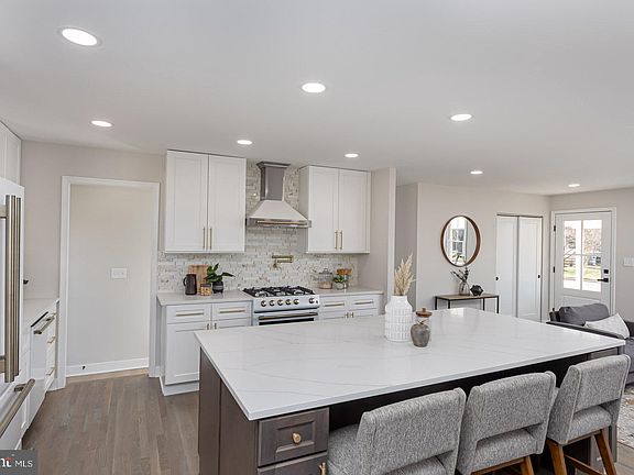 Set on a nearly 1/2-acre lot in the tranquil community of York Manor, this fully renovated ranch-style home in Timonium offers modern living with thoughtful details throughout! A sprawling front lawn complements the brick accents and clean lines of this single-story abode. Inside, refinished original hardwood floors, recessed lighting, and neutral tones create an inviting atmosphere. The open-concept layout seamlessly connects the main gathering areas with a kitchen designed for both function and flair. Abundant cabinetry, a 5-burner stove with a pot filler, a striking tile backsplash, and sleek countertops extend to an oversized island, perfect for meal prep and casual dining. Your primary suite is a comfortable retreat with a spa-inspired ensuite featuring a frameless shower. Three additional bedrooms and two updated baths offer versatility for any lifestyle. A finished basement is ideal for use as a media room, gym, or recreational hub. Venture outside to a sunlit deck overlooking the backyard, while a separate covered patio with an outdoor fireplace makes entertaining effortless. A long driveway leads to a detached 2-car garage, ensuring ample parking. Located near shopping, dining, and I-83, you’ll also have easy access to downtown Baltimore. Come seize the opportunity to experience it today!