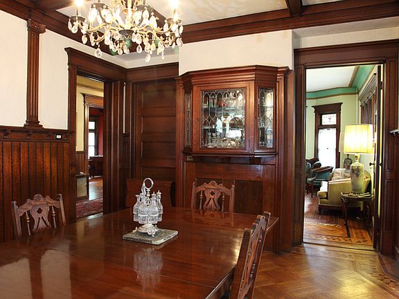 Grandeur Revisited in this splendid Victorian Home This classic Victorian boasts all the original period details. The exquisite center hall has beautifully refinished parquet floors. The first floor includes many rooms with original oak paneling in exceptional condition. Original plaster walls have unique dental moldings. The home has three sets of working pocket doors and a wood-coffered ceiling in the dining room, along with wood paneling and distinctive built-in lead glass cabinet. The house has a double parlor with a wood fireplace.Enormous kitchen with a large bay window, butler’s pantry, and back stairs.The gorgeous staircase leads to the second floor, where you’ll find a front master bedroom spanning the whole width of the house. There are two additional bedrooms and a full bathroom, plus a plant room. The third floor has three bedrooms and a full bath with claw-foot tub and pedestal sink. Lovely private rear yard. Unfinished basement with gas heat. Brand-new roof.