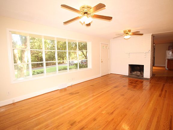 One Level Brick Ranch with fresh paint and new fixtures. Hardwood floors in living room; brick fireplace and all three bedrooms. Spacious kitchen/dining area combo with stone fireplace, all appliances to remain. Sun room not included in sqft. Full unfinished basement with brick fireplace. Huge fenced in backyard with patio. Basement garage and attached carport. Mature trees.