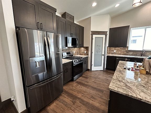 New construction home in Highland Meadows by Alpine Home Builders. Single level, open floor plan with kitchen island and corner pantry. Enjoy your outdoor space with large, covered front and back patios. Master bathroom has private toilet room, tile shower and double vanity. Granite countertops, stainless appliances, real wood alder trim, and air conditioning are just a few of the upgraded finishes! Home is under construction with estimated completion end of September 2024. Interior photos are of different home with similar finishes, for finish reference only. To schedule a showing please call/text Valerie Blanchette at 406-885-3537 or your real estate professional today.