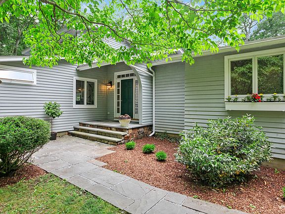 Tranquility on Belden Brook.......This 1 level gem has been totally renovated & transformed. Commune with nature in your open floor plan home w/ its many vaulted ceilings. A Great Room includes the Living Room w/fpl. that's open to the Dining Room. The kitchen has high end appliances and is open to the Family Room. An office/loft overlooks the Great Room and is perfect for work from home days. The Four Season Porch is wonderful for enjoying the gorgeous brook and property. Two Primary Bedroom Ensuites have spectacular large baths. One even has a romantic fireplace. A brand new, high ceiling third bedroom w/sunny bathroom has never even been used. There is a large deck off the kitchen, as well as a stone patio for outdoor entertaining. This is an incredible setting and home.