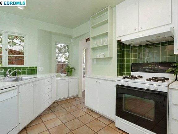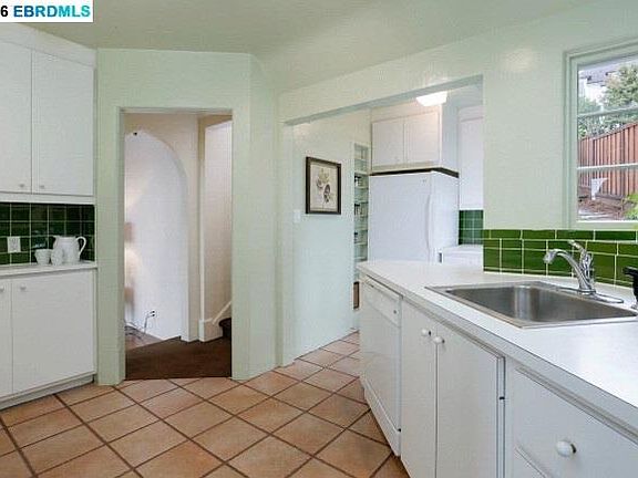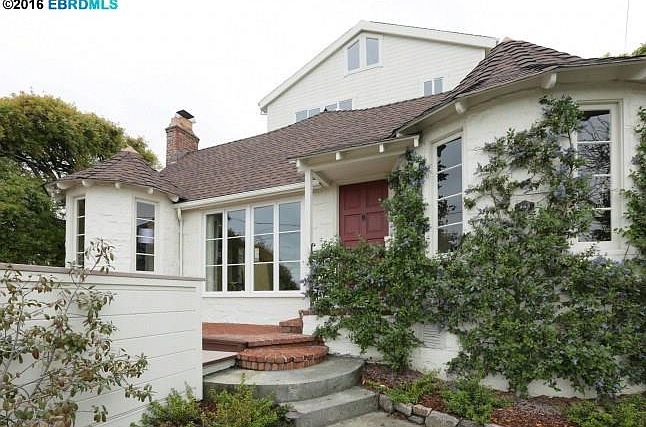 Golden Gate views. Charming Normandy. Refinished hardwood floor. Large front deck has views, private fenced back yard level from Family Room. Upper large bedroom has adjacent office and fireplace. Dining Room is in turret room. Arched doorways at entry, cathedral beam ceiling in Living Room, flexible floor plan. Basement and attic space