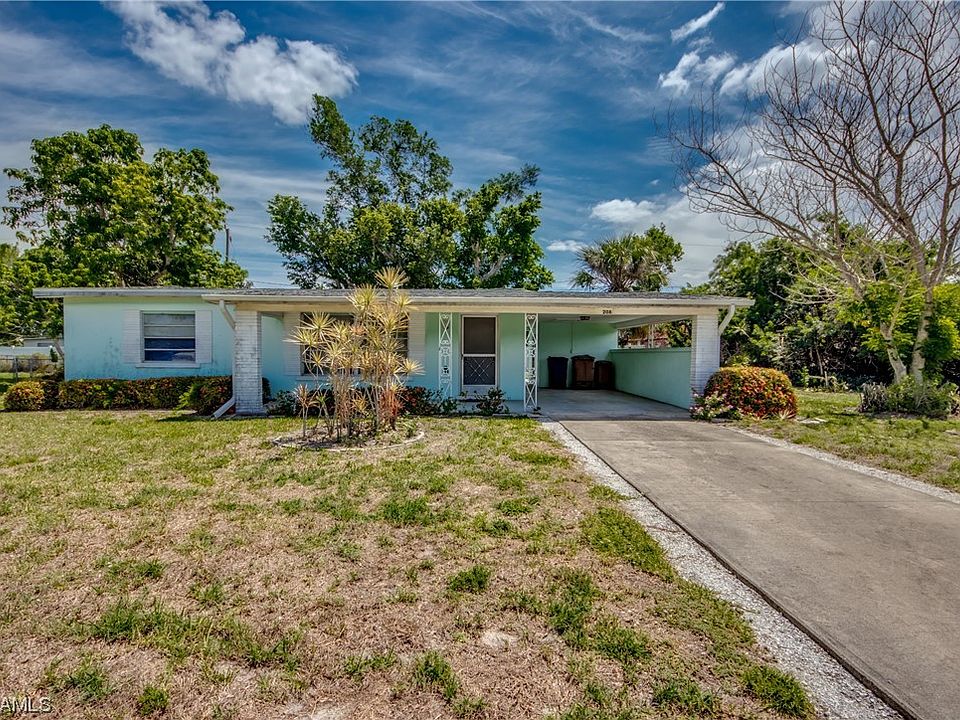 MULTIPLE OFFERS HIGHEST & BEST DUE SUN 4/23 @ 6 PM. Remember the days gone by when life was simpler, distraction free & uncluttered? You can live that lifestyle again! Take a step back in time to enjoy the old days. This concrete block home has been nicely preserved from its 1950’s era. Unique characters throughout, like the working pink wall oven & electric cooktop, unique light switches, original cabinets & vanities in nice condition & a fireplace! What’s not old is the 2018 roof that sailed through Hurricane Ian without a problem. NO flooding to this home. Only minor screen damage on the lanai from the storm. Inviting kitchen with large pantry & breakfast nook overlooking the lush landscaping. You’ll love the spacious rooms, open floorplan, shaded lanai, carport & laundry in its own exterior room. PLUS a storage shed to boot! Just a block away from the Caloosahatchee River & close to shopping, grocery, dining & public transportation. Minutes to I75 & the RSW International Airport. This home does not have central air conditioning, but does have a wall unit. This move in ready home is ready for your personal touch! Perfect opportunity for first time home buyer or investor! Hurry!