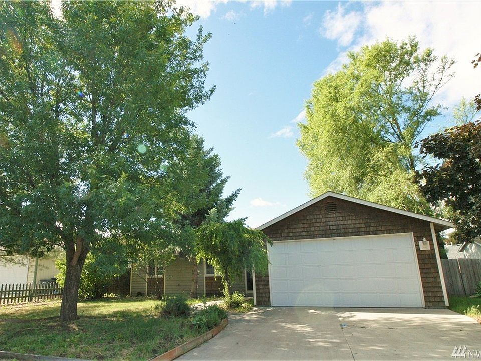 Tucked in the trees! This home has 3 bedrooms and 2 full baths with a kitchen that is open to the dining and living rooms. The south side of the home has windows that let in the sunniness of Eastern Washington! Laminate flooring in the main area. Good closet space. Nice fenced yard area with fruit trees and a large deck. Double car garage. Nice setting in a culdesac!
