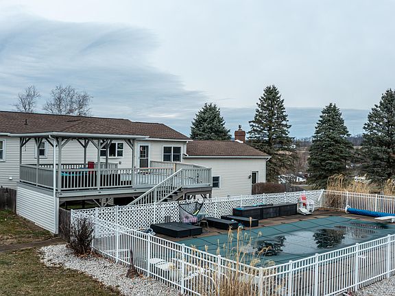 The home of your dreams with over 3600 sq. ft. of finished living area. The view is endless with magnificent sunrises and sunsets. There are 12 acres giving you room to roam. Enjoy your privacy in a quiet rural setting. An open deck and covered deck overlooking the in ground pool. A great room with cathedral ceiling and stone fireplace, propane insert also area with heated flooring. Guest suite fourth bedroom. Total finished living space approx 3686 sq. ft.