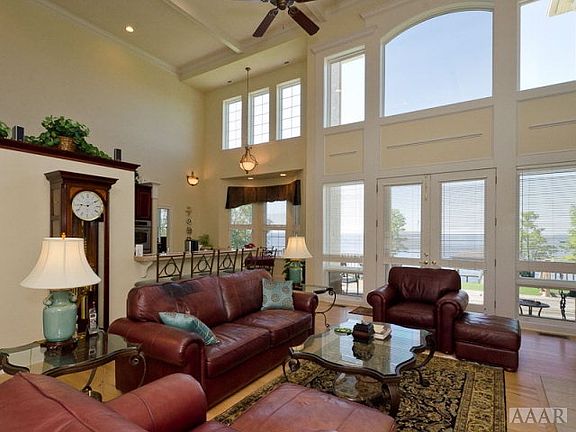 This stunning home offers 144' of waterfront on the Albemarle Sound and Chowan Country Club golf out your front door. It was custom built by the owners with great attention to detail and design to take advantage of the waterfront views. The open floor plan features cathedral ceilings and walls of windows with most of the living areas overlooking the sound. The gourmet kitchen comes complete with a bay window breakfast area, a walk in pantry and a butlers entertaining pantry off the dining room. In the master bedroom there is a corner fireplace, French doors leading to the deck and an adjacent waterfront sitting area. Upstairs the handsome study includes a fireplace and refreshment area with an adjacent waterfront office. Outside the landscaping and setting is as impressive as the inside. For waterfront play, there is a pier, boathouse with a covered lift, and an open lift. Enjoy sunsets over the sound and entertaining on the large deck in relaxed sophisticated style!