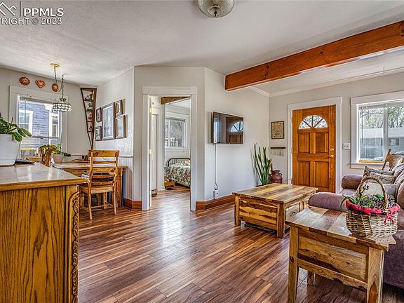 Welcome to your dream home, an enchanting West Side ranch-style retreat nestled in the heart of Old Colorado City. This prime location offers convenient access to shopping, entertainment, scenic hiking trails, and so much more! This delightful 2-bedroom residence boasts an array of distinctive features, including exposed pine beams, bespoke built-in shelves in the master bedroom and walk-in closet, and exquisite mahogany ceiling panels in the bathroom. Bathed in natural light, the open floor plan creates an inviting atmosphere and awaits your personal touch and creative updates. The gourmet kitchen showcases custom cabinetry, a comprehensive suite of appliances, durable Formica countertops, and a beautifully crafted built-in hutch. Additional kitchen amenities include tailor-made shelves, a spacious pantry, a cozy eating nook, and ingenious storage benches to house all your culinary treasures. Complementing the property is a detached (breezeway) 1-car garage, providing ample space for parking. Don't miss this exceptional opportunity to make this charming haven your own – schedule a viewing today!
