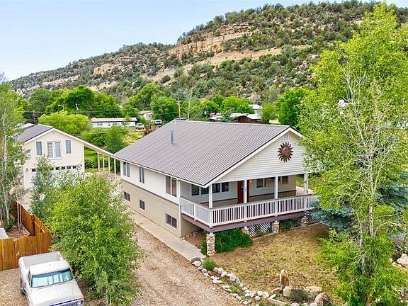 Great home! Great location! Great extras! Step inside this lovely 3 bedroom home and you'll just want to stay! The open and inviting main level lies beneath beautiful vaulted ceilings and is bathed in natural light. The huge kitchen is a true chef's dream with custom cabinetry, spacious corian countertops, stainless appliances, double sink, 4 place bar seating, and comfortable dining area. The open floor plan provides a terrific great room style living area with an ambience enhanced by the attractive gas stove/hearth and tasteful light fixtures. The spacious master bedroom is also on the main level with a sparkling en suite bathroom. This gorgeous bathroom features large vanity with corian countertop, custom tile bath/shower surround and an oversized tub. The big walk-in closet also has a convenient laundry chute. Downstairs has two additional bedrooms each with walk-in closets, full bath, and a central space between the bedrooms that could be used for additional living area. The large laundry room offers lots of extra room for storage, exercise room, etc. Enjoy the breeze and La Plata Mountain views on the beautiful covered porch. An outstanding space for summer bbq's and relaxation. The attached 2 car carport has plenty of room for bikes, boats, and gear. The extra large shed offers even more storage capacity with plenty of room for tool storage and equipment. The property is surrounded with numerous mature trees providing shade and privacy. These trees surround the property and include aspen, apple. spruce, cottonwood and crabapple. Gardening is easy with the rich river bottom soil of Dolores, frost free hose lines, and a large raised bed complete with green house framing. Now..that's not all. The property also includes a detached 1 car garage/shop with finished upstairs space that could be converted to a rental or guest house. With multiple driveways, alley access and an abundance of paved area- there's plenty of room for extra vehicles, RV's,boats,etc. The location of this home couldn't be better. Situated on a quiet side street, the home is one of few in town with views of the La Platas. You're just a few minutes from everything including schools, shops, trails to Boggy Draw and of course the amazing Dolores River!