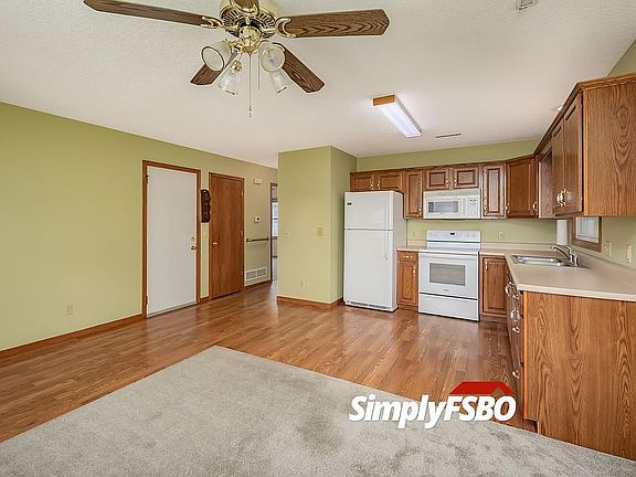 Hard-to-find and extremely affordable living in this classy villa ranch located in Eldridge, within the North Scott School District. This property features 2 bedrooms, 1 bathroom, a walk-in closet in the master bedroom, a laundry nook, an attached 1-car garage, and a charming front porch. One step into condo! The yard is easy to maintain for your enjoyment. Just 1 block from Downtown Eldridge, with restaurants and shopping within walking distance. The HOA dues cover grass mowing and snow removal, but the homeowner is responsible for maintaining the flowers and landscaping. Recent updates include: 2024 flooring in the bedrooms and bathroom, garbage disposal; 2023 furnace/AC; water heater; 2022 Bath Fitter shower; living room carpet; 2021 washer/dryer combo; 2019 front windows and refrigerator.