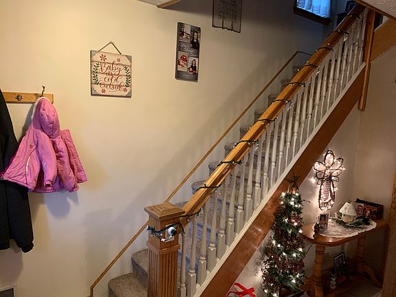 Three bedrooms, full bath, 3/4 bath, half bath, covered front porch, back deck partially covered, central air, new furnace in 2016, new water heater in 2019, new carpet in 2019, new basement windows in 2018, finished attic as a fourth bedroom