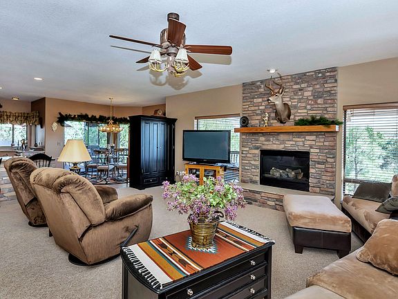 Come home to this privately situated home on a 4.33 Acre lot with panoramic mountain views in the very popular Knolls community! This 3 bedroom + office, home features 2 bedroom plus office on the main level with private Guest Master and Game Room downstairs. Enjoy the extreme privacy that 4 + acres provides, you will have plenty of room for RV storage, to add an RV garage or additional garage space and other out buildings. Or, just relax on the spacious zero-maintenance deck and enjoy the wind whispering through the pines and almost 360 degree mountain views from your hilltop location. The main level open floor plan has a large Great Room with stone fireplace, kitchen with panoramic views with a kitchen featuring granite countertops, stainless steel appliances and stone accents throughout. The private Master Suite has en suite bath with jetted tub, separate shower, dual vanities, and large walk-in closet. Also on the main level are two additional bedrooms, one currently being used as an office. Downstairs, is the perfect bar/game room with Guest Suite with full bath and has room for a kitchen to make the perfect In-Law Quarters or just to entertain. This space also has its own garage and separate entrance. Outside, the lot is partially fenced, perfect for pets and there is also a ramada covered patio space already plumbed for a hot tub. This amazing property could be yours, come see it now!