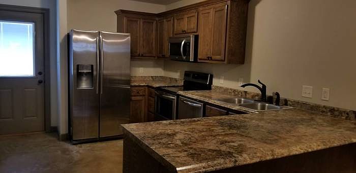 2 bedroom 2 bath end unit with carport, stained concrete floors, stainless steel appliances, washer and dryer included, central heat/air, $35 application fee, $500 deposit, $650 per month, no pets 1 mile to ASU Beebe Contact us to schedule a showing.
