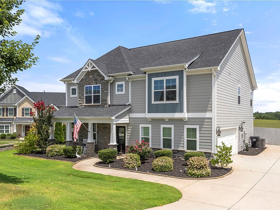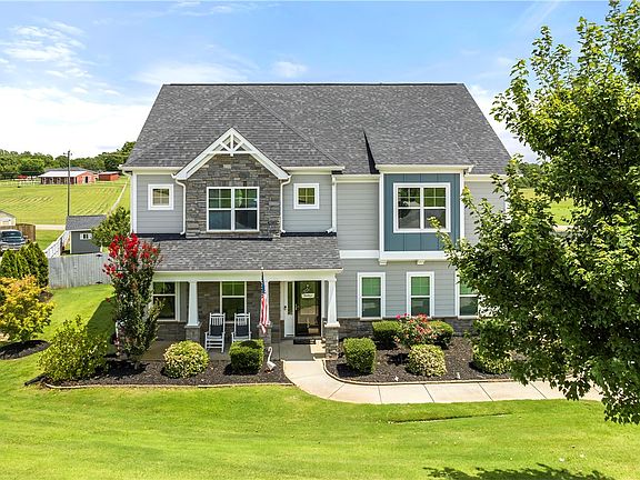 Welcome to this immaculately maintained home with backyard oasis that exudes charm and elegance! Step inside and be captivated by the tasteful upgrades throughout. The stunning LVP flooring sets the stage for the rest of the home, complemented by the crown moldings and coffered ceilings that add a touch of sophistication to every room. The living space has been thoughtfully updated with a modern fireplace, creating the perfect cozy atmosphere for relaxation. Step outside onto the rear covered porch with its tongue & groove ceiling, where you can unwind and enjoy the tranquil views of the backyard oasis. This outdoor retreat boasts a salt water pool, stamped concrete, and a custom cedar post pavilion featuring tongue & groove ceilings, power, and fans. A custom fire pit and carefully placed concrete steps complete the backyard's inviting ambiance, perfect for entertaining friends and family. Lights thoughtfully added to the backyard space illuminate it beautifully at night. The salt pool ensures refreshing dips on warm days, while the double gate in the fence from Hunt Road provides convenient access. You'll appreciate the fully fenced yard, offering a safe and private space for children and pets to play. Storage is a breeze with the custom-built storage building featuring a sturdy 2x6 frame. For future privacy, trees have been strategically planted around the property. The updated light fixtures and canned lighting further enhance the contemporary feel of the home. The second level features the master bedroom and 4 other large bedrooms. The sheetrock wall was removed and balusters add to open things up and a charming barn door, was added to the loft, converting it into a fifth bedroom or versatile space to suit your needs. The side entry garage comes with an epoxy-coated floor, adding to the overall appeal and functionality. The home also features smart thermostats, ensuring both style and energy efficiency. Families will love the convenience of being located in the highly sought-after Great Wren School District. Additionally, this residence offers an ideal location being just 25 minutes away from both Clemson and Greenville.Lastly, the well-managed HOA with reserves ensures the neighborhood's upkeep and adds to the overall value of this exceptional home. Don't miss the opportunity to own this truly remarkable property, where attention to detail and thoughtful upgrades combine to create a haven for comfortable living and unforgettable gatherings. Schedule a showing today!