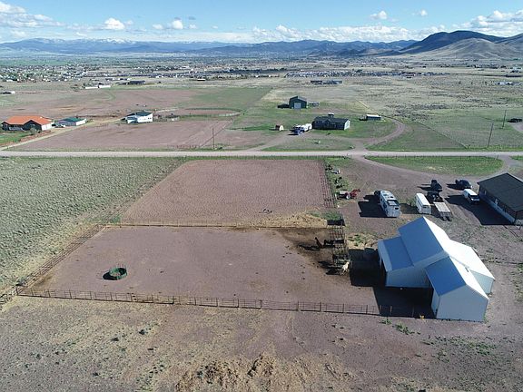Remarks: Horse Property. Single level, new 2500 sq. ft. custom home on almost 18acres with a private road. 4 bed, 2.5 bath with a huge master suite. 1100 sq. ft. attached 3 car garage. House and garage have radiant floor heat that runs off natural gas and is very efficient. Garage has vaulted ceilings, floor drains, and is zero-entry into house. Hardi plank/cement siding with steel wainscoting. Asphalt shingles. Wired for RV hookup and Hot tub. Front and back patios, fenced back yard with 12'x12'shed on concrete. The interior has an open floor plan with 9' walls and plenty of room. Top of line laminate floor runs throughout. Plush carpet in the 3 spare rooms. Custom cabinets and granite countertops. Walk-in pantry. Gas stove and gas fireplace. Solid core 36'' interior doors with many walls insulated and sound proofed. All LED lighting. Moen pluming fixtures. Master has its own patio door , walk-through his and her closet and vanities. Huge walk-in shower with three heads. Laundry room also has a dog shower. Property has 48x40 barn with an attached 18x24 barn. Corral with waterer, arena, plenty of trailer parking, 4 horse boarding pens 60'x120' each have their own shelter and auto waterer. Currently grossing $1500/mo. with much more demand and room to expand. Whole property is fenced, all horse pens/corrals have continuous metal pipe fence. Amazing views of the mountains and city lights.