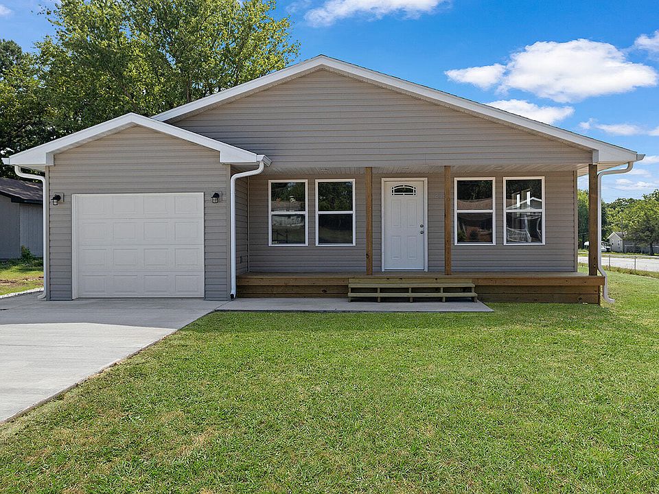 NEW HOME!!!! 3 Bedrooms 2 Bath home a one car garage with an opener. Stainless steel appliances, Gas Stove, dish washer. Central air and heat 90 plus energy saver. Vaulted ceiling in the living room. Large windows for the natural light to come in. 2x4 walls and in the attic is 30R plus insulation. Two frost free hydrants. There is a large covered front porch, great for those evenings watching the sun set. One year home warranty comes with home. Also the Seller will buy a point on your interest rate to help lower your monthly payment.