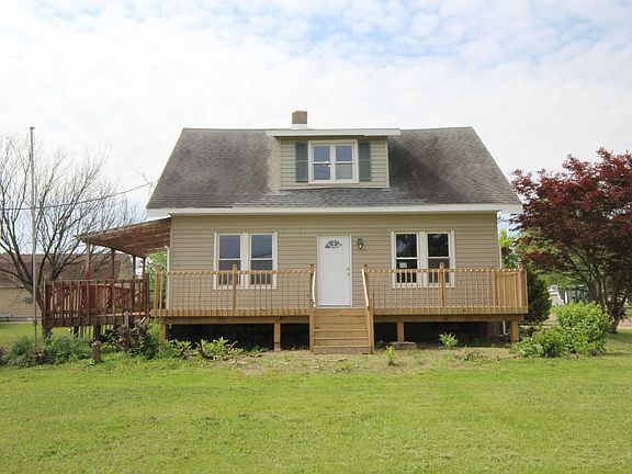 Opportunity knocks! Affordable 2 bedroom home offers great potential to earn sweat equity! Recent updates include fresh paint, laminate flooring, membrane roof, front porch, exterior doors, numerous light fixtures, smoke alarms and many outlets. Maintenance-free vinyl siding and windows. Spacious living room open to a formal dining room. Kitchen features oak Merillat cabinetry and island. Convenient main floor laundry/informal dining room off kitchen. Large bathroom with corner tub and a 7x4 tiled walk-in shower. 2 generous sized bedrooms with cathedral ceilings and spacious closets. Bonus den/home office could be utilized as nursery. Spacious basement offers opportunity for rec room & storage. 2 stall garage with adjoining 20x18 workshop and 8x32 storage shed. Extra 32x21 paved guest parking. Wraparound porch-new 29x8 front plus existing 28x8 side. Sold as-is, no warranties expressed or implied. Seller needs 3 weeks for closing. Manager for seller is licensed Realtor.
