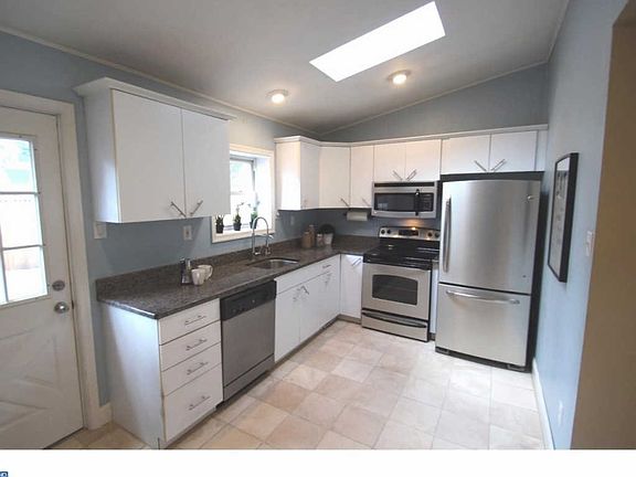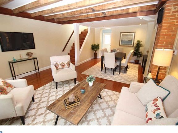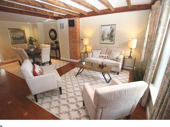 Sleek and stylish appointments throughout this updated townhome in the heart of downtown Media less than two blocks from the center of town! Open floor plan on first floor with original exposed wood beams and brick, refinished hardwood floors and open turned wood staircase to second floor. Bright and modern eat in kitchen with skylight and stainless steel appliances. The second floor features a large updated full bathroom and master bedroom with walk in closet. The third floor has two additional bedrooms with lots of closet space. Laundry facilities and extra storage are in your basement. Central air! Enjoy many evenings in your lovely fenced in yard with friends before walking over to dinner at one of Media's many great restaurants. Shopping, train and trolley are just a short walk away! One year HSA home warranty included. Residential permit parking on street.