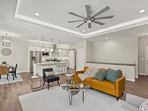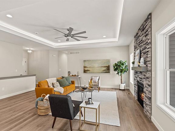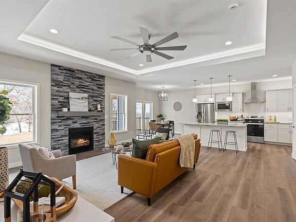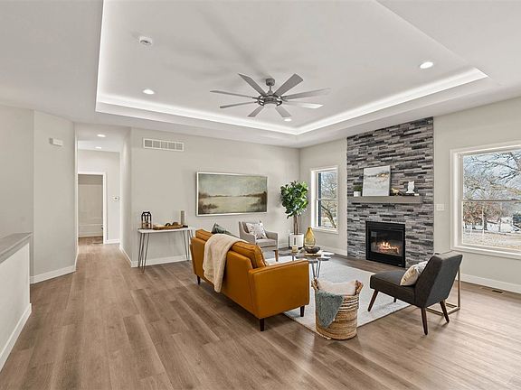 Stunning new construction in Kalona's sought-after SouthTown community! This beautifully designed ranch home offers a thoughtful layout and modern touches throughout. Step inside to soaring tray ceilings and an open-concept floor plan, perfect for living and entertaining. The centerpiece of the living area is a striking stacked stone gas fireplace. The bright, white kitchen is as functional as it is beautiful, featuring a spacious center island, sleek quartz countertops, stainless steel appliances, and a generous pantry for all your storage needs. The primary suite offers a tranquil retreat with its elegant tray ceiling, spacious walk-in closet, and a spa-like bathroom. The bathroom features a floor-to-ceiling tiled walk-in shower and a sleek light-up mirror, combining luxury and functionality. The main level also includes two additional bedrooms and a full bathroom, along with a convenient mudroom and laundry room combination just off the attached 3-car garage. The walk-out lower level expands the home’s possibilities with a sprawling family room ready to be customized to fit your lifestyle. It also includes a fourth bedroom and an additional bathroom. Step outside and enjoy the scenic views from the screened-in porch or relax on the patio off the lower level walkout. Located in the heart of SouthTown, this home offers access t