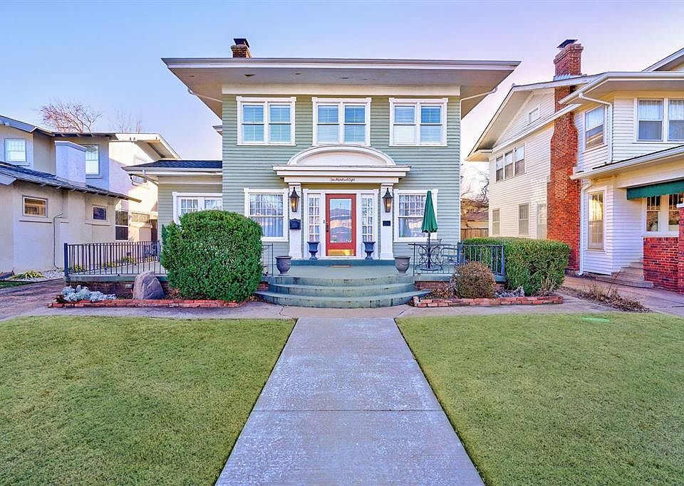 Step into timeless elegance with this beautifully updated 1919 home in the heart of Heritage Hills combining historical charm and modern conveniences. Refinished hardwood floors flow throughout, highlighting the home’s classic character while blending seamlessly with thoughtful modern updates. The spacious backyard is an entertainer’s dream, featuring a sparkling pool with updated equipment, a cozy firepit, and plenty of room to relax or play. Inside, the large kitchen offers generous counter space, a charming dining nook, and an easy connection to the formal dining room—perfect for hosting gatherings. A versatile second living area on the main floor doubles as a study, game room, or retreat. Off the kitchen, you’ll find a powder bath and a convenient walk-out basement with laundry. Upstairs, three spacious bedrooms and two full baths await, including a serene primary suite with updated finishes. Recent upgrades provide peace of mind, including a Generac whole-home generator, 2017 roof, plus updated HVAC and pool systems. All this, just steps from Perle Mesta Park, Uptown, and downtown’s best dining and activities. Don’t miss your chance to own a piece of history in this cherished Heritage Hills treasure.