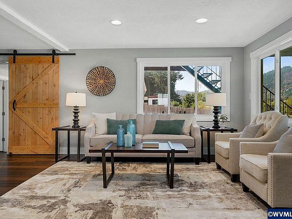 This North Corvallis remodeled home features a stunning main level master bedroom with walk-in closet, ensuite bath and French doors which open onto the back decks. Has 4 bedrooms plus an office upstairs with its own balcony. All new kitchen cabinets, granite counters, apron sink and a dining room surrounded by windows on 3 sides. Plus, a 1300 sq ft garage/shop space with 3 cleared acres mean endless possibilities! Close to Good Samaritan, Mountain View Elem, CV High School, and Santiam Christian Schools.